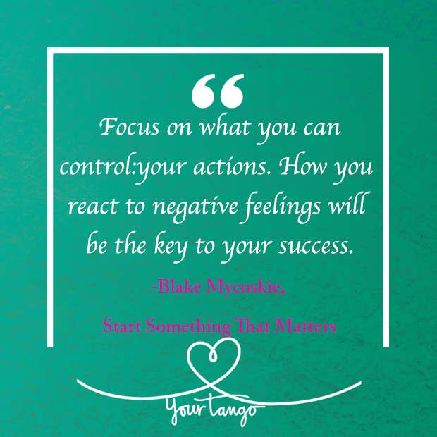 “Focus on what you can control: your actions. How you react to negative feelings will be the key to your success.” — Blake Mycoskie, Start Something That Matters