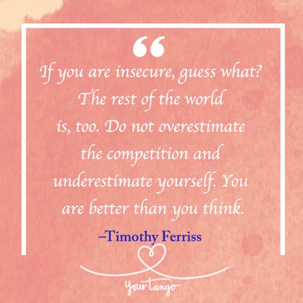 "If you are insecure, guess what? The rest of the world is, too. Do not overestimate the competition and underestimate yourself. You are better than you think." — Timothy Ferriss, The 4-Hour Workweek: Escape 9-5, Live Anywhere, and Join the New Rich
