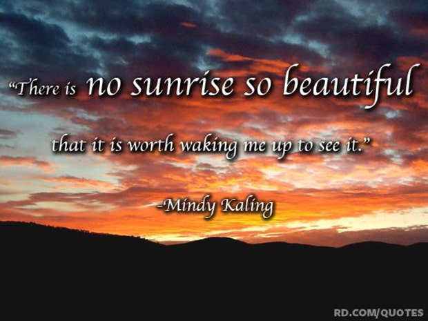 "There is no sunrise so beautiful that it is worth waking me up to see it."- Mindy Kaling
