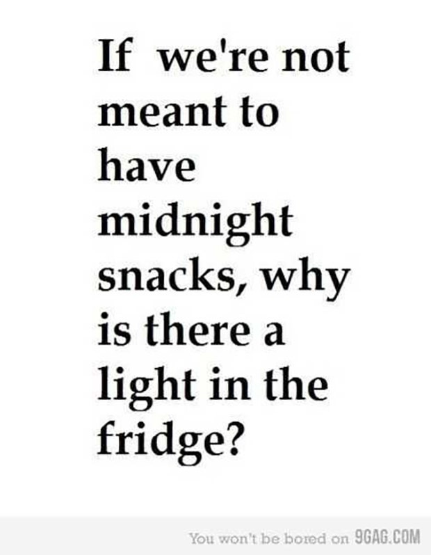 "If we're not meant to have midnight snacks, why is there a light in the fridge?"-Anonymous