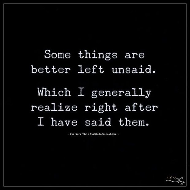 "Some things are better left unsaid. Which I generally realize right after I have said them."-Anonymous