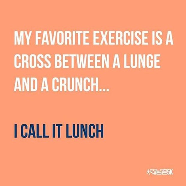 "My favorite exercise is a cross between a lunge and a crunch... I call it lunch."- Anonymous