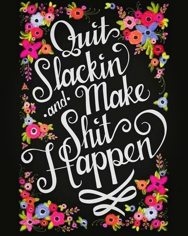 “Quit slackin’ and make sh-- happen.” — Unknown