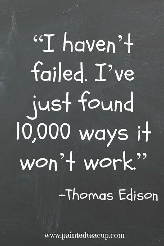 “I haven’t failed. I’ve just found 10,000 ways it won’t work.” — Thomas Edison