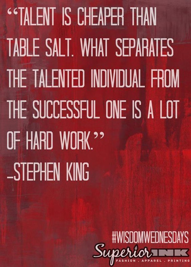 “Talent is cheaper than table salt. What separates the talented individual with the successful one is a lot of hard work.” — Stephen King