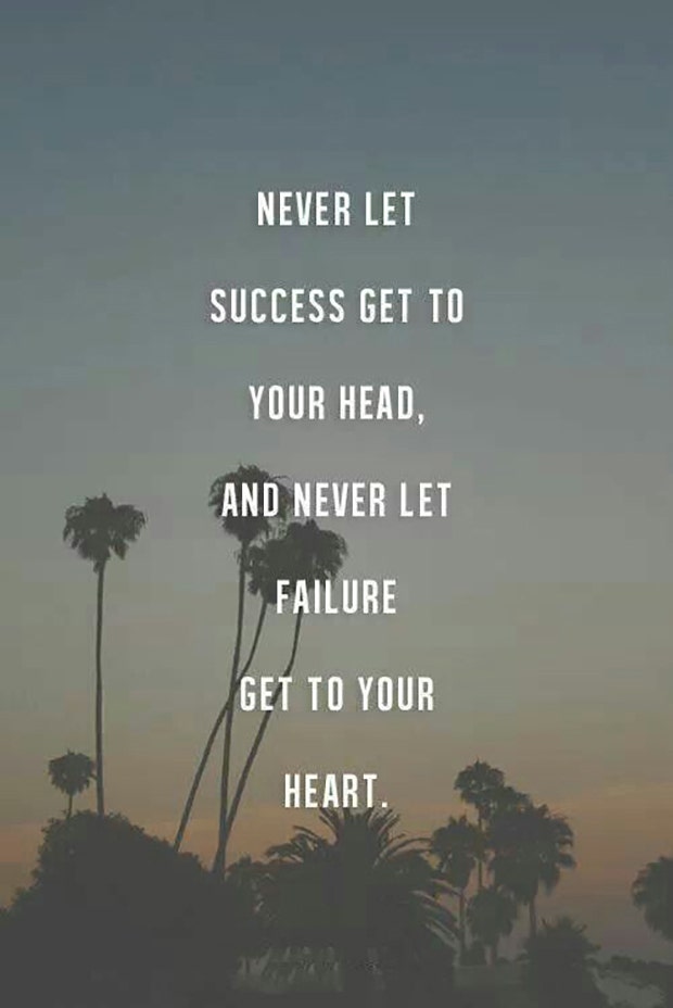 “Never let success get to your head, and never let failure get to your heart.” — Unknown