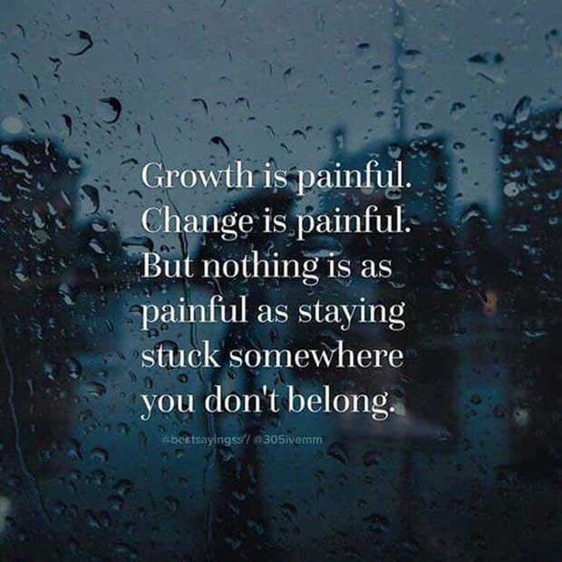 “Growth is painful. Change is painful. But nothing is as painful as staying stuck somewhere you don’t belong.” — Unknown