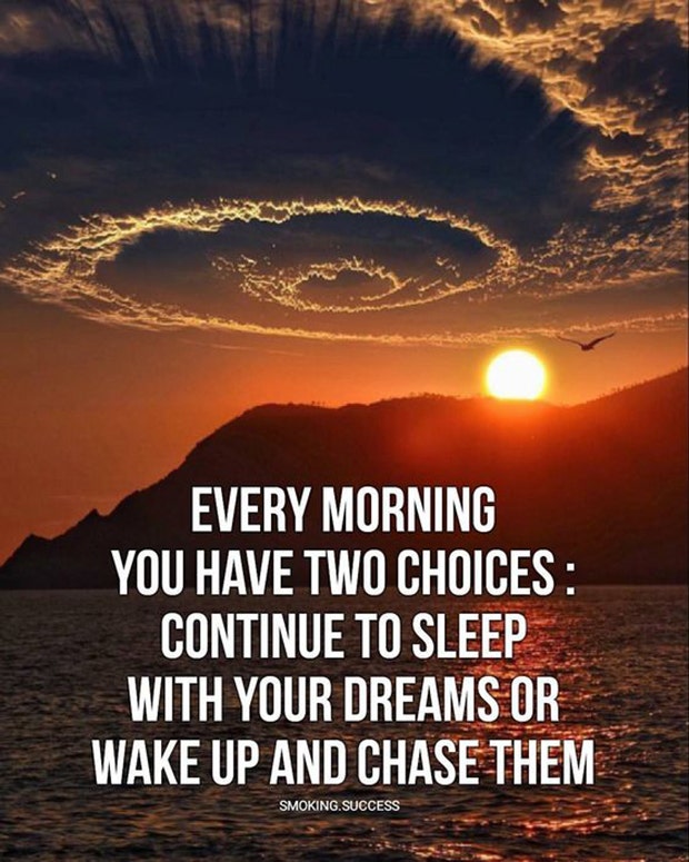 “Every morning you have two choices: continue to sleep with your dreams or wake up and chase them.” — Unknown