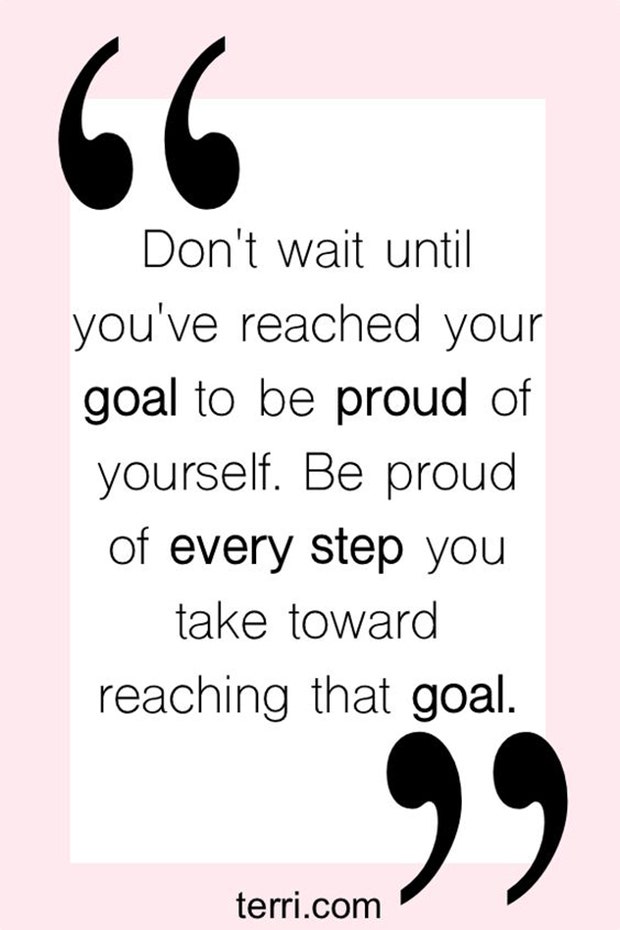 “Don’t wait until you’ve reached your goal to be proud of yourself. Be proud of every step you take towards reaching that goal.” — Unknown