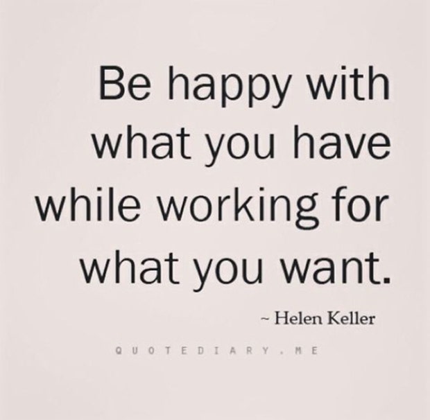 “Be happy with what you have while working for what you want.” — Hellen Keller