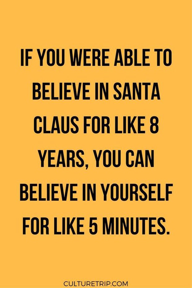 “If you were able to believe in Santa Claus for like 8 years, you can believe in yourself for like 5 minutes.” — Unknown