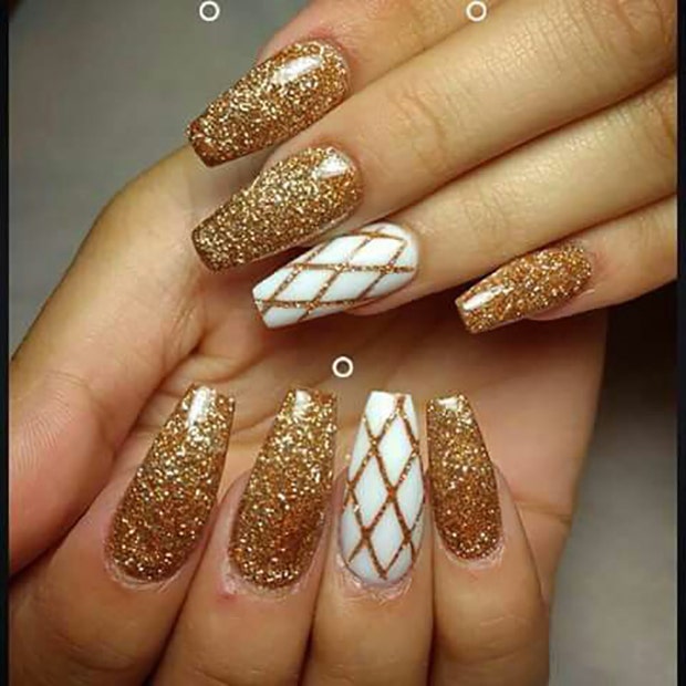 If you have never considered black nails, now is the time to do so. Embrace your assertiveness with your power color of black. As a Scorpio, you are not afraid to be fierce, so a complimentary design for those awesome black nails would be a sharp gold 'V' shape that shows you off best. After all, you are not one to be shy and demure.
