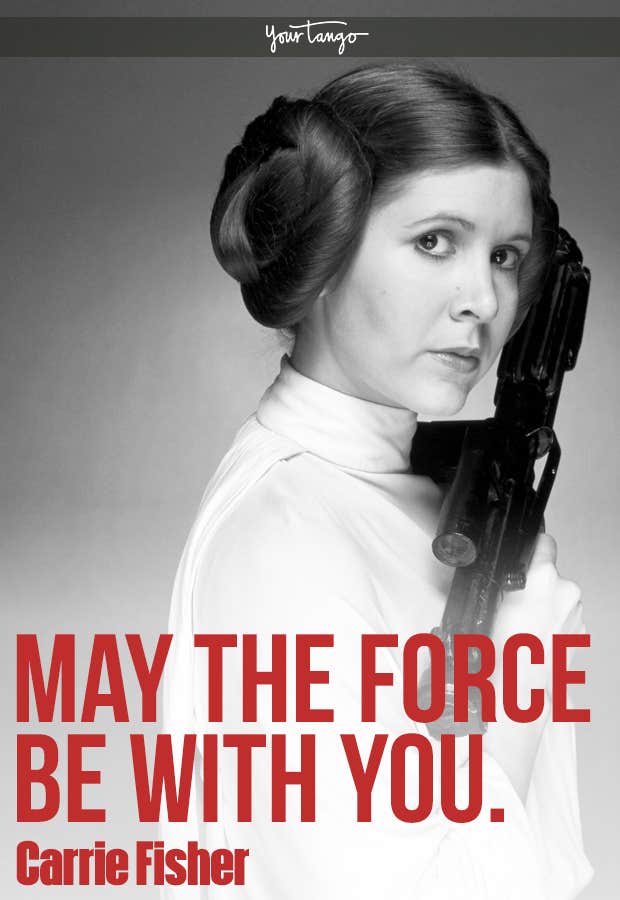 (as General Leia Organa) "May the force be with you." — Carrie Fisher (as Princess Leia)