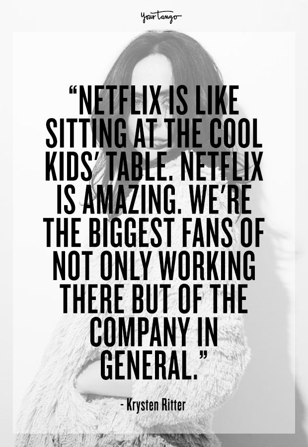 “Netflix is like sitting at the cool kids' table. Netflix is amazing. We're the biggest fans of not only working there but of the company in general.” — Krysten Ritter