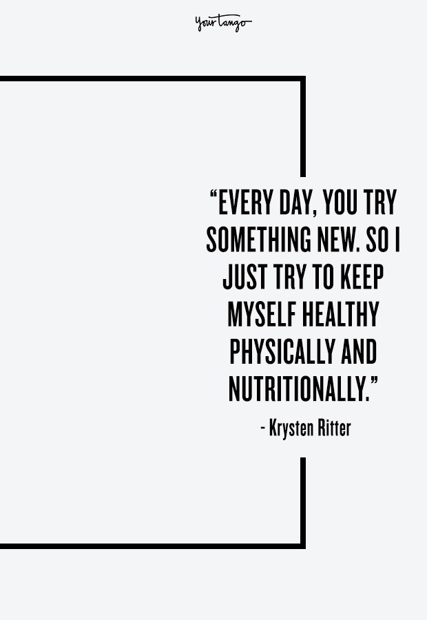 “Every day, you try something new. So I just try to keep myself healthy physically and nutritionally.” — Krysten Ritter