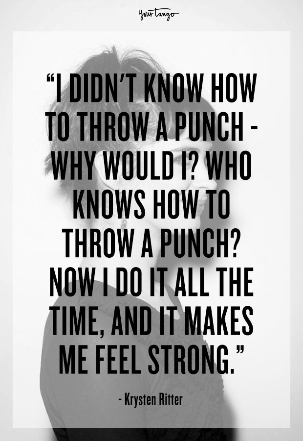 “I didn't know how to throw a punch - why would I? Who knows how to throw a punch? Now I do it all the time, and it makes me feel strong.” — Krysten Ritter