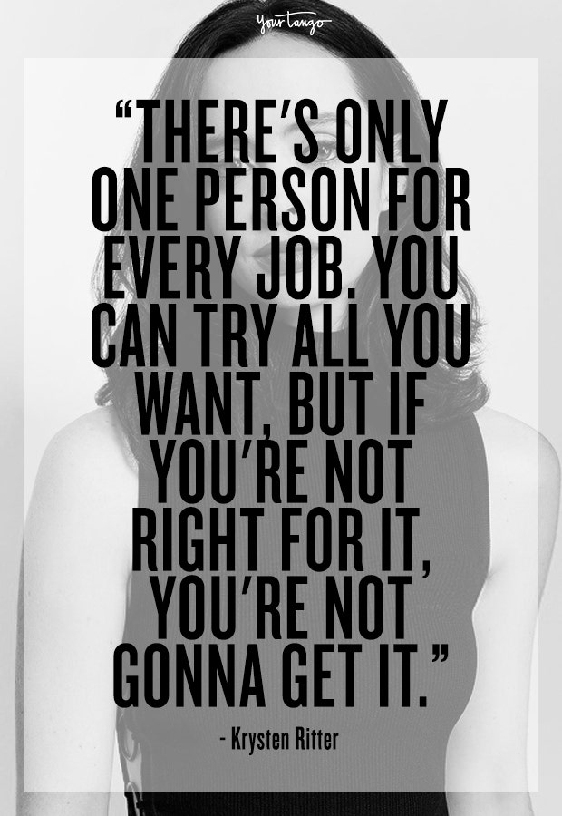 “There's only one person for every job. You can try all you want, but if you're not right for it, you're not gonna get it.” — Krysten Ritter