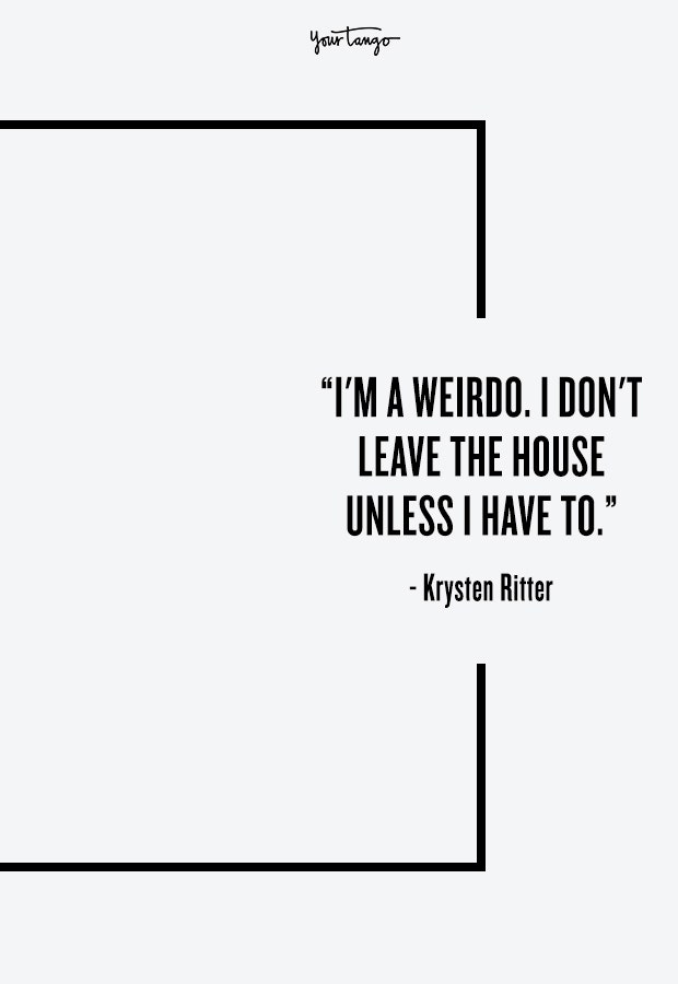 “I'm a weirdo. I don't leave the house unless I have to.” — Krysten Ritter