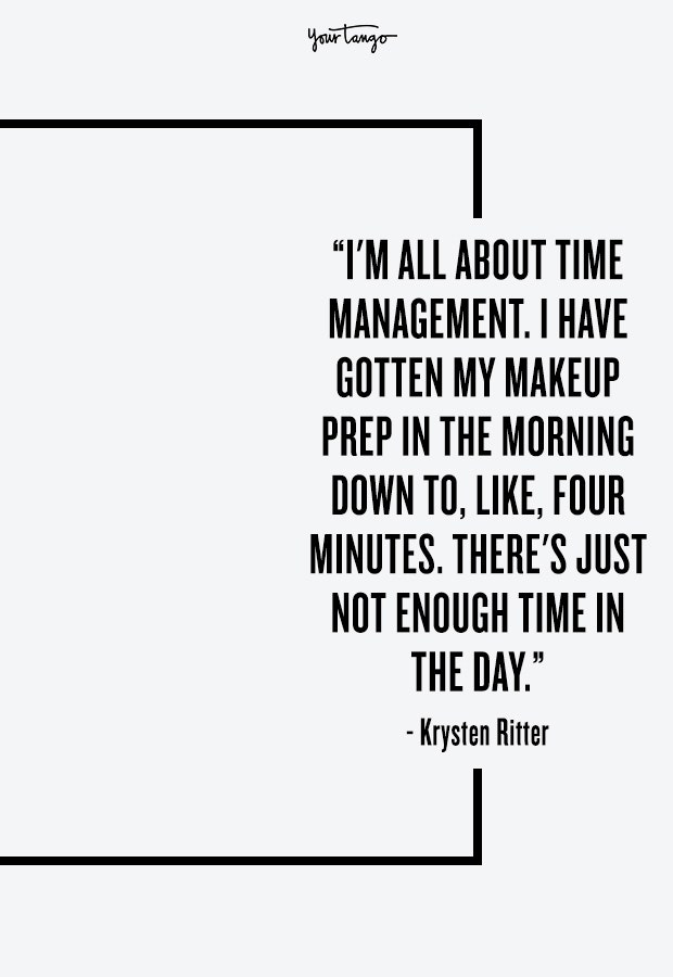 “I'm all about time management. I have gotten my makeup prep in the morning down to, like, four minutes. There's just not enough time in the day.” — Krysten Ritter