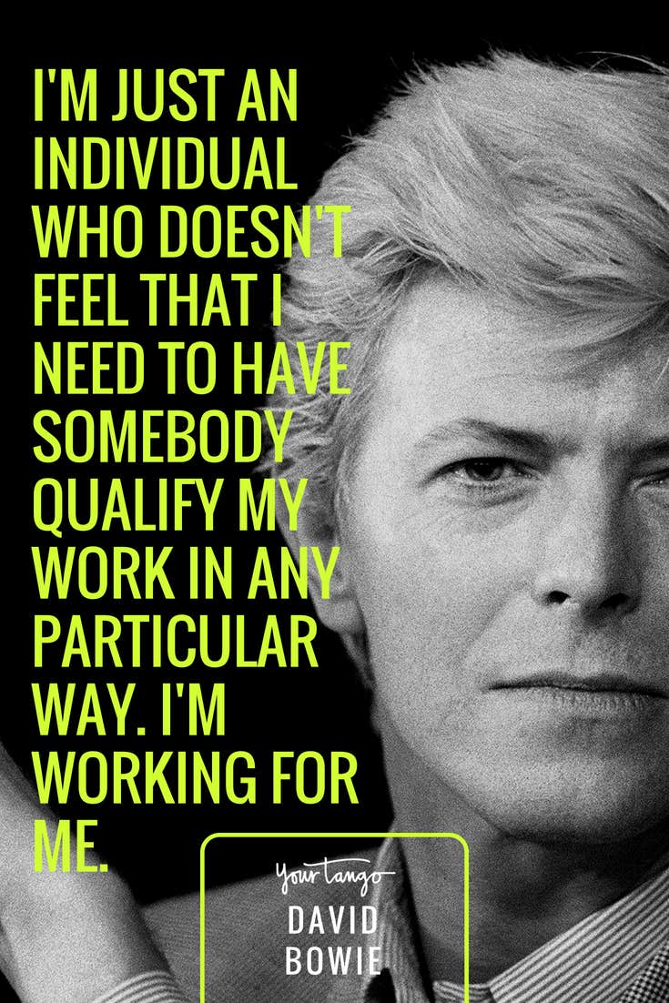 "I'm just an individual who doesn't feel that I need to have somebody qualify my work in any particular way. I'm working for me.—​David Bowie