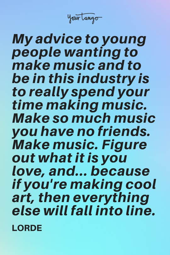 "My advice to young people wanting to make music and to be in this industry is to really spend your time making music. Make so much music you have no friends. Make music. Figure out what it is you love, and... because if you're making cool art, then everything else will fall into line" -Lorde