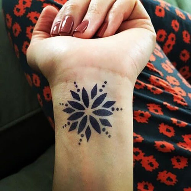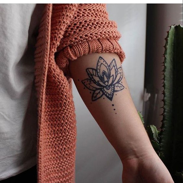This tattoo is brought to us by Inkbox (someone on Pinterest used their freehand ink to draw it) and is a simple lotus flower with dots for detail.