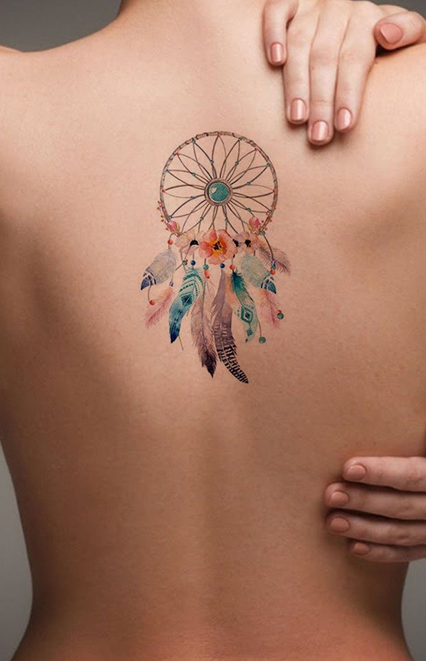14. Flower Dream Catcher Temporary Tattoo