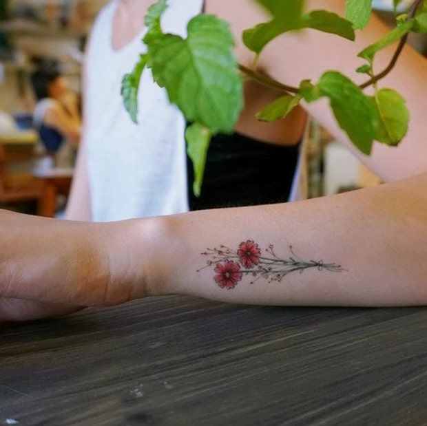 For those seeking to try out a smaller flower tattoo, this is a great choice. It looks best on the inside of your arm and adds a feminine touch to any look.
