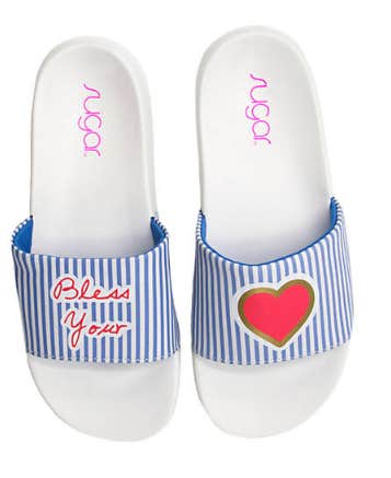 Pool slide sandals aren't just for sitting by the pool, they can also be great for wearing to her next pedicure, lounging around the house, or even a beach-side lunch. Sugar’s 'Bless Your Heart' sandals are the perfect way to show your BFF you *heart* her, at a great — and stylish — price!