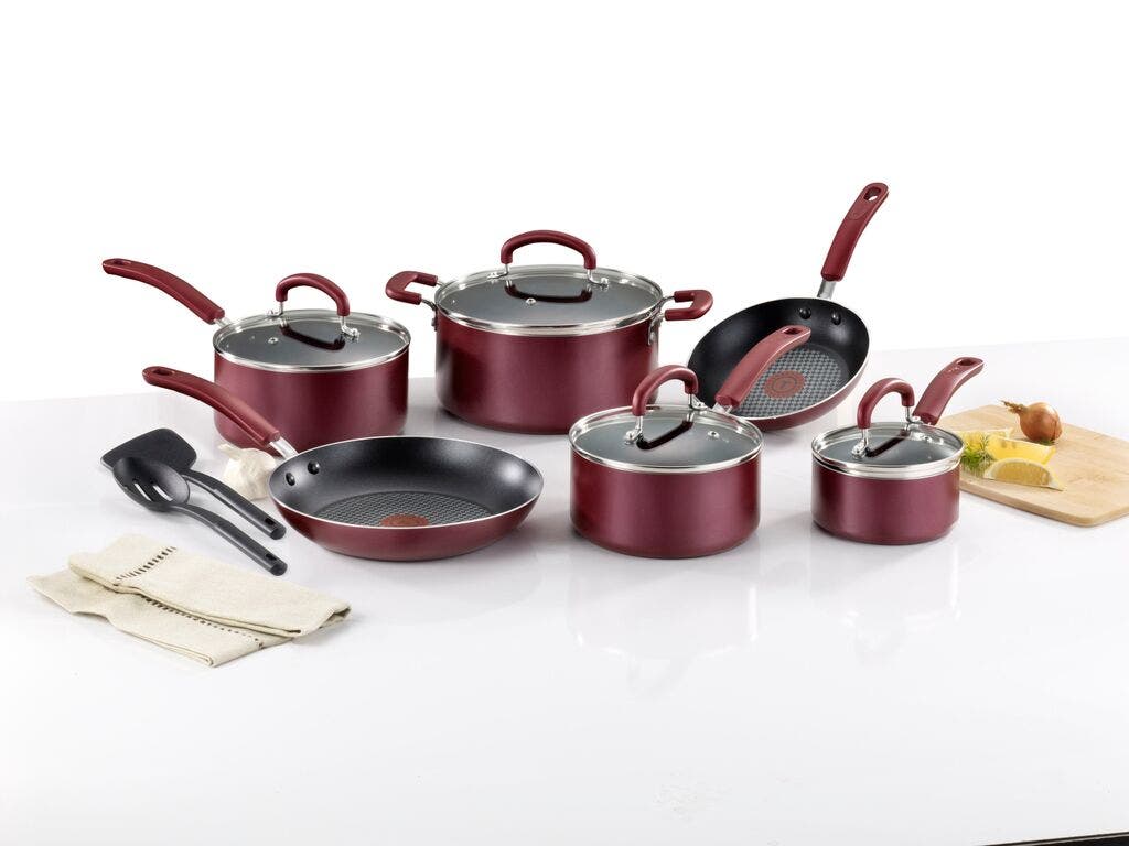 The must-have T-fal Color Luxe Cookware Set combines style with superior performance features, making it the perfect multipurpose set for all of your cooking needs. This 12 piece set includes: 8" Fry Pan, 10" Fry Pan, 1qt Covered Saucepan, 2qt Covered Saucepan, 3qt Covered Saucepan, 5qt Covered Dutch Oven, and 2 Nylon Tools.