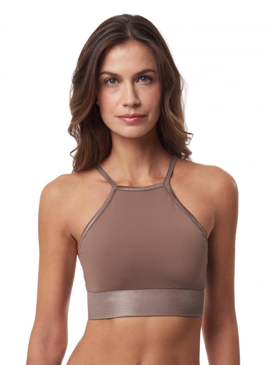 The Bra offers the support you require in low-high intensity workouts, with strap placement designed to accentuate strong shoulders. Imported from Italy, reversible 2-ply shiny and matte fabric features the signature gold lion on both sides.