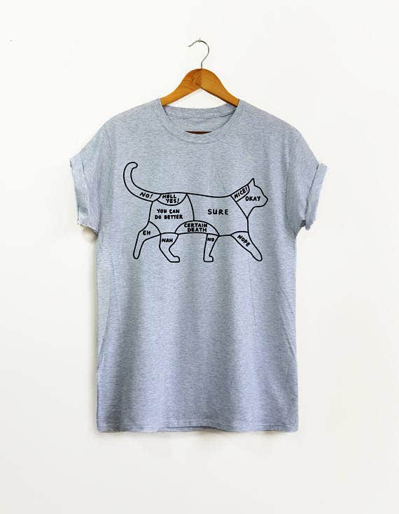 This super cute t-shirt acts as a map to everywhere your cat loves being pet. Spoiler alert: It’s basically everywhere... except their tummy. And their tail. And probably their paws.