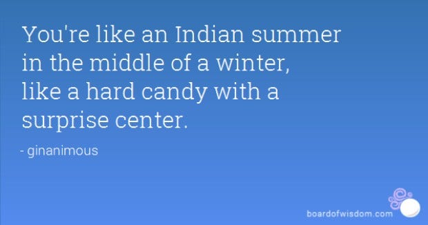 "You're like an Indian summer in the middle of Winter, like a hard candy with a surprise center" -Ginanimous