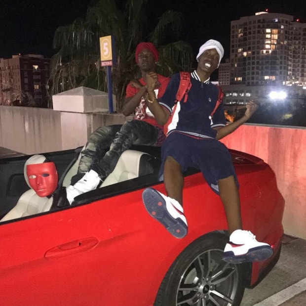 After news of the XXX’s murder broke, Soldier Kidd reemerged on Instagram with a photo that showed him and a friend sitting on a car. In the front seat of the car, there is a red mask just like the one police say XXX’s shooter wore. “Triple X but we banging like we BD,” he wrote in a caption that included two emojis: a man in a turban and an arrow in a bullseye, also tagging his friend @soldier.jojo.