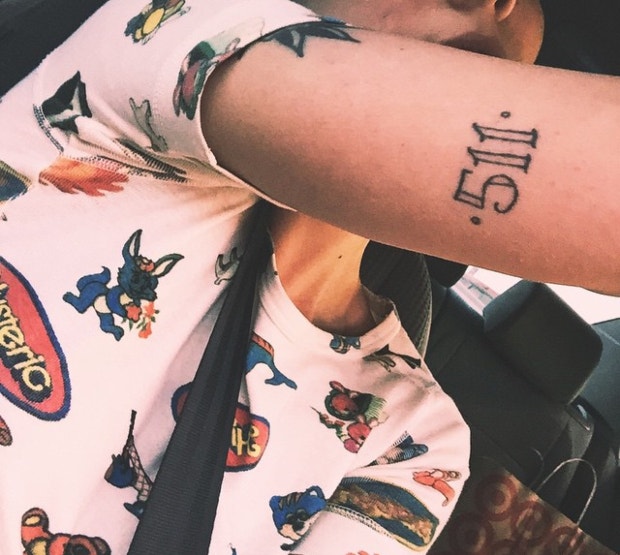 The meaning behind this next tattoo is super sweet. Halsey got the "511" in honor of her little brother! Halsey has two younger brothers, Sevian and Dante, and Sevian's birthday is May 11th! Halsey shared the pic above on her Instagram and wrote, "Today is so special to me I’ve had it tattooed on my body for years."