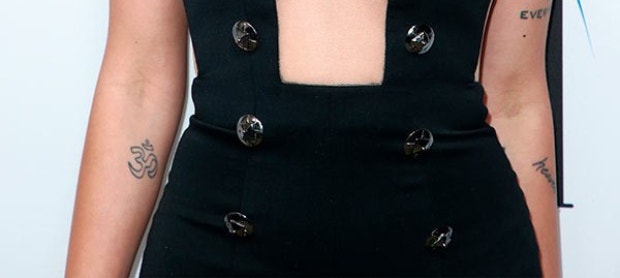 Halsey got this Hindu symbol in 2013, and it symbolizes the sound of creation and is considered one of the most spiritual and important symbols in Hinduism.