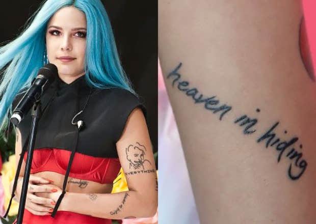 This is third tattoo Halsey got in honor of her 2nd Album. "Heaven in hiding" is a song off the album.