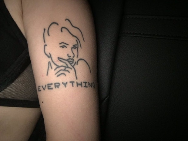 Many initially thought that this self-portrait piece was just that, but it actually has a hidden meaning. Halsey got the minimalist portrait tattoo with the message "Everything" underneath in honor of Norwegian electronic musician Lido’s 2016 album Everything. Lido played an important role in Halsey's musical career, serving as the executive producer for her debut album Badlands.