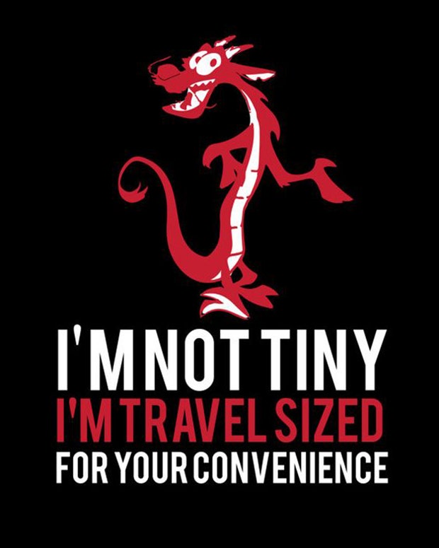 "I'm not tiny. I'm travel sized for your convenience." — Mulan