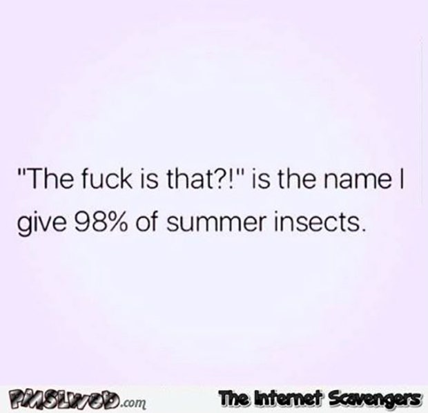 "'The f-ck is that?!' is the name I give 98% of summer insects." — unknown