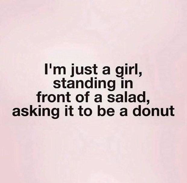 "I'm just a girl, standing in front of a salad, asking it to be a donut." — unknown
