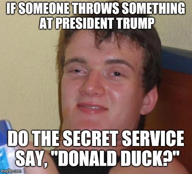 "If someone throws something at President Trump, do the secret service say, 'Donald Duck'?" unknown
