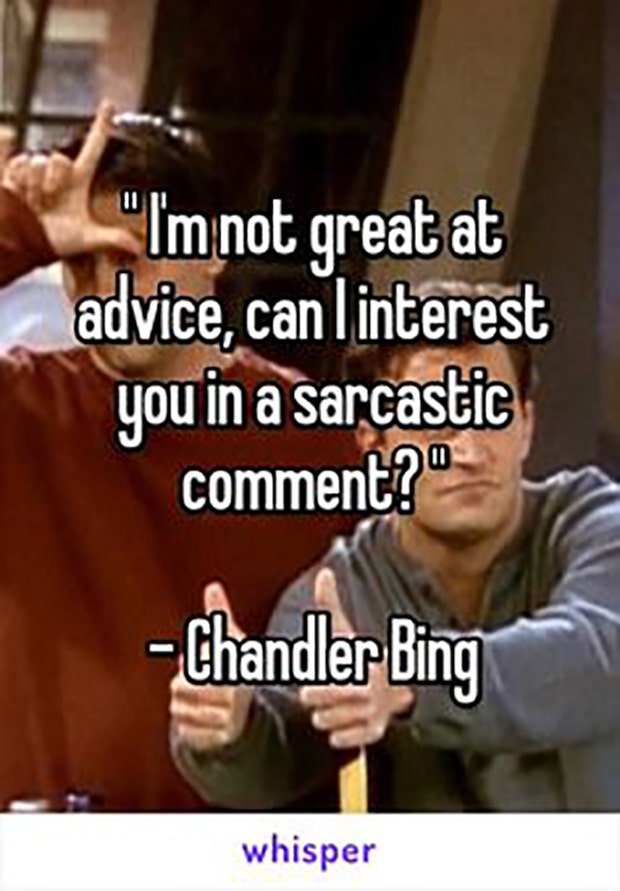 "I'm not great at advice, but can I interest you in a sarcastic comment?" Chandler Bing