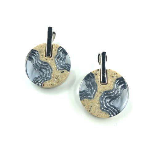 An Isthmus is a narrow strip of land with sea on either side, forming a link between two larger areas of land. Made of bonded beach sand and ultramarine resin, these earrings hang 1.25 inches long from rhodium plated ear posts. Which each purchase made from this collection, a donation is made to Water.org.