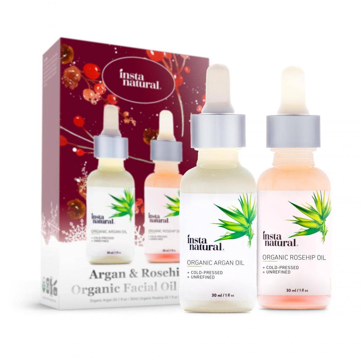 Rich in fatty acids, vitamins and antioxidants, Argan and Rosehip Oil are known for their nourishing benefits that soften the appearance of skin. With Argan Oil to support the skin’s natural barrier and Rosehip Oil to reduce signs of aging, the Organic Facial Oil Duo includes the best-performing oils for complete care of all skin types.