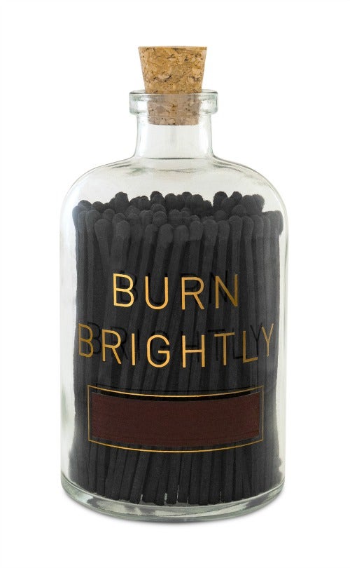 The easiest gift for any Secret Santa exchange: gorgeous matches in an even more beautiful container! This match bottle sparkles with 24K gold “Burn Brightly” screen-print on a glass bottle containing 120 black matchsticks.