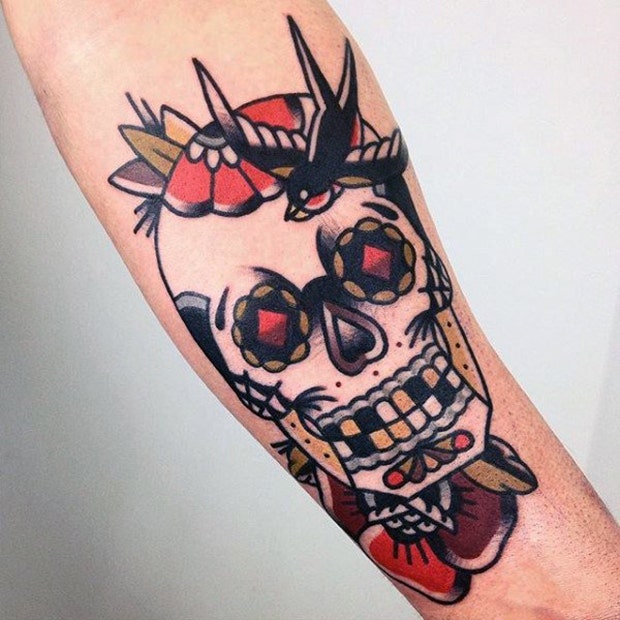 13. Sugar skulls look nice in the neo-traditional tattoo style.