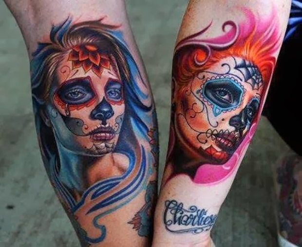 50. A his and hers matching tattoo of sugar skulls.