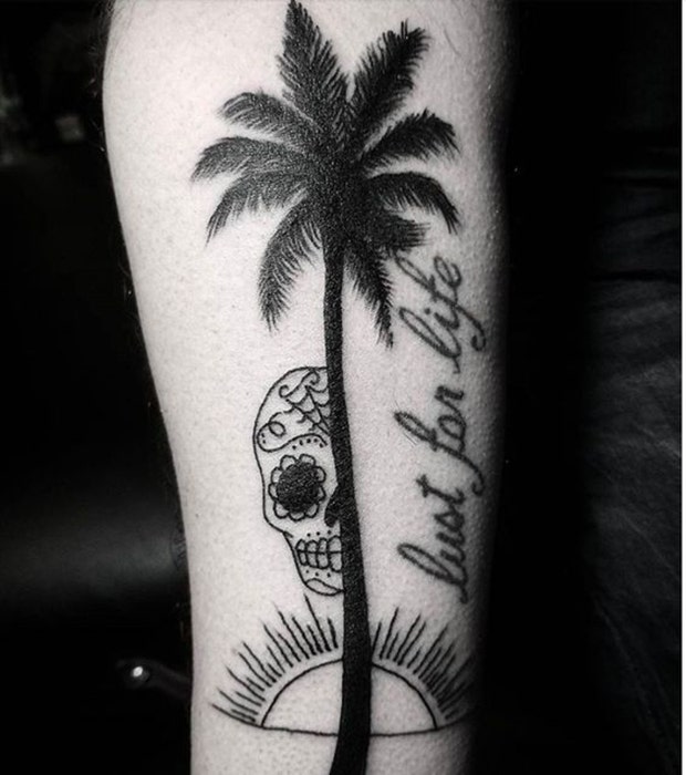 While black and white tattoos look good on everyone, lots of shadows give it a dark vibe that fits with the death aesthetic.