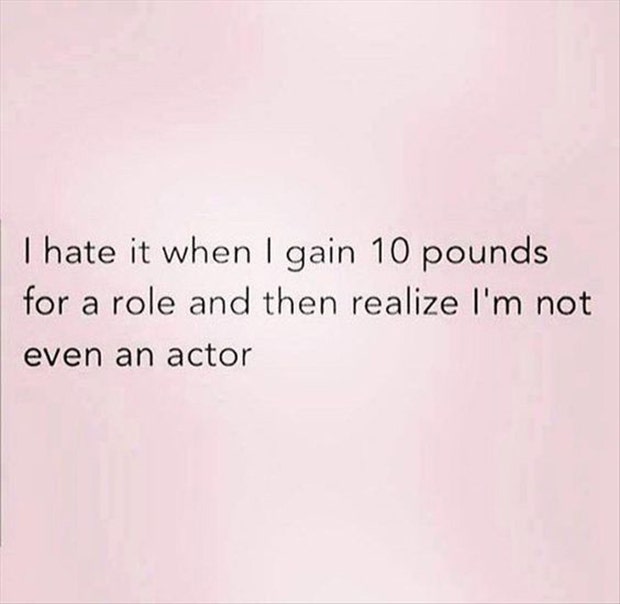 "I hate it when I gain 10 pounds for a role and then realize I'm not even an actor."— unknown